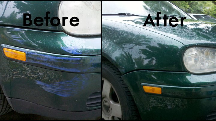 This client accidentally kissed a high curb that was painted blue... Unfortunately, the curb transferred paint onto the bumper. She tried everything to get it off, but nothing worked. I was more than happy to lend her a hand. After a few passes with the polisher, it was all gone and like new.